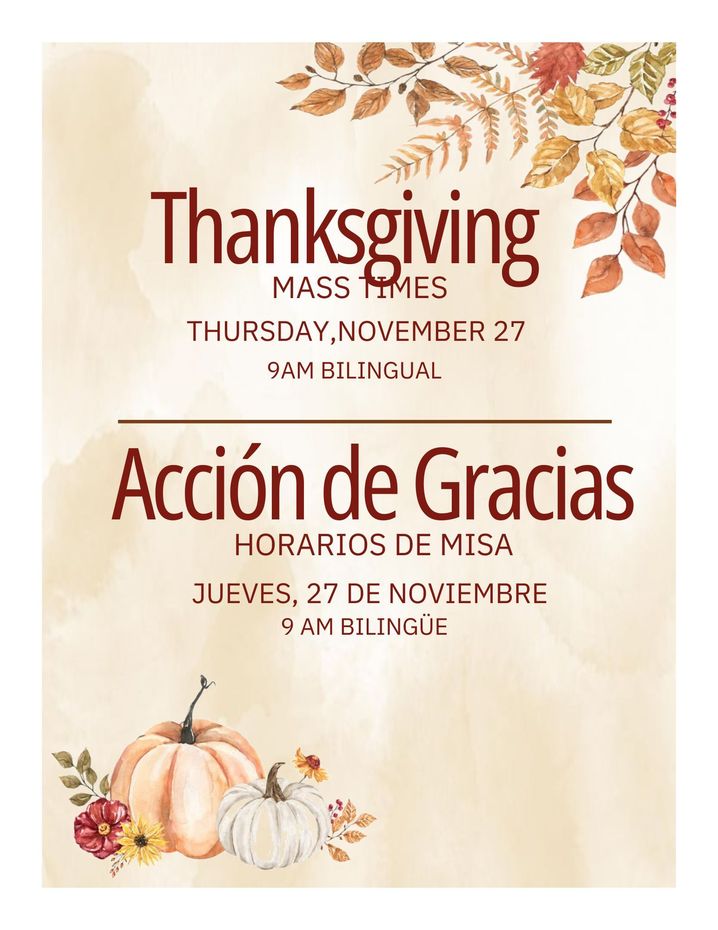 Sunday: 8:00 am and 10:00 am (English), 12:00 pm (Spanish),